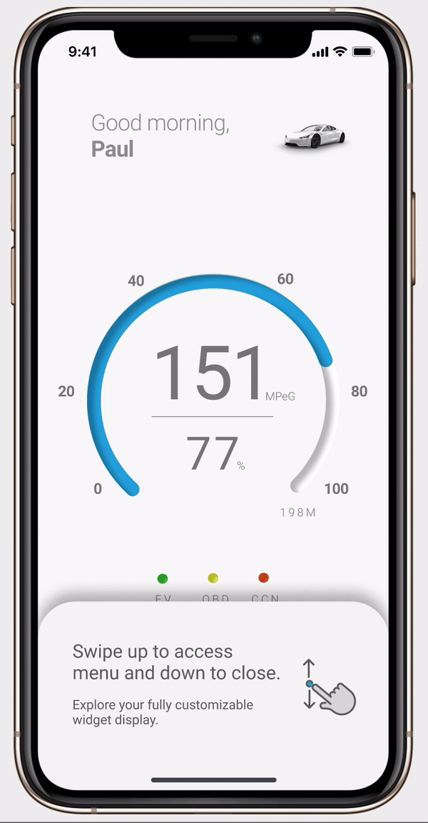 Statistics with current and comparative live reporting on their current charge state, habits, savings, and vehicle health with the autonomy to customize with their favorite functions.