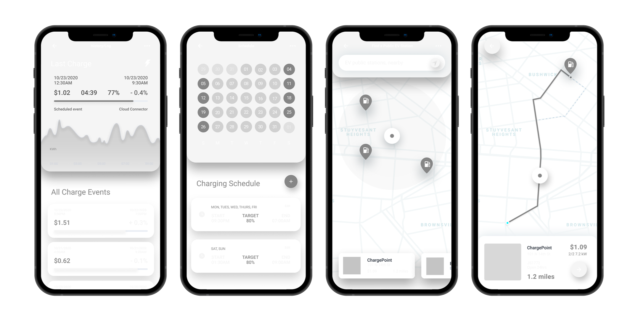 With our design challenge underway, we knew our main priority was that power providers needed to find a way to incentivize users to charge at off-hour times. The first design challenge was to make a simple and intuitive design that prompts users quickly and easily to set a future charging events.